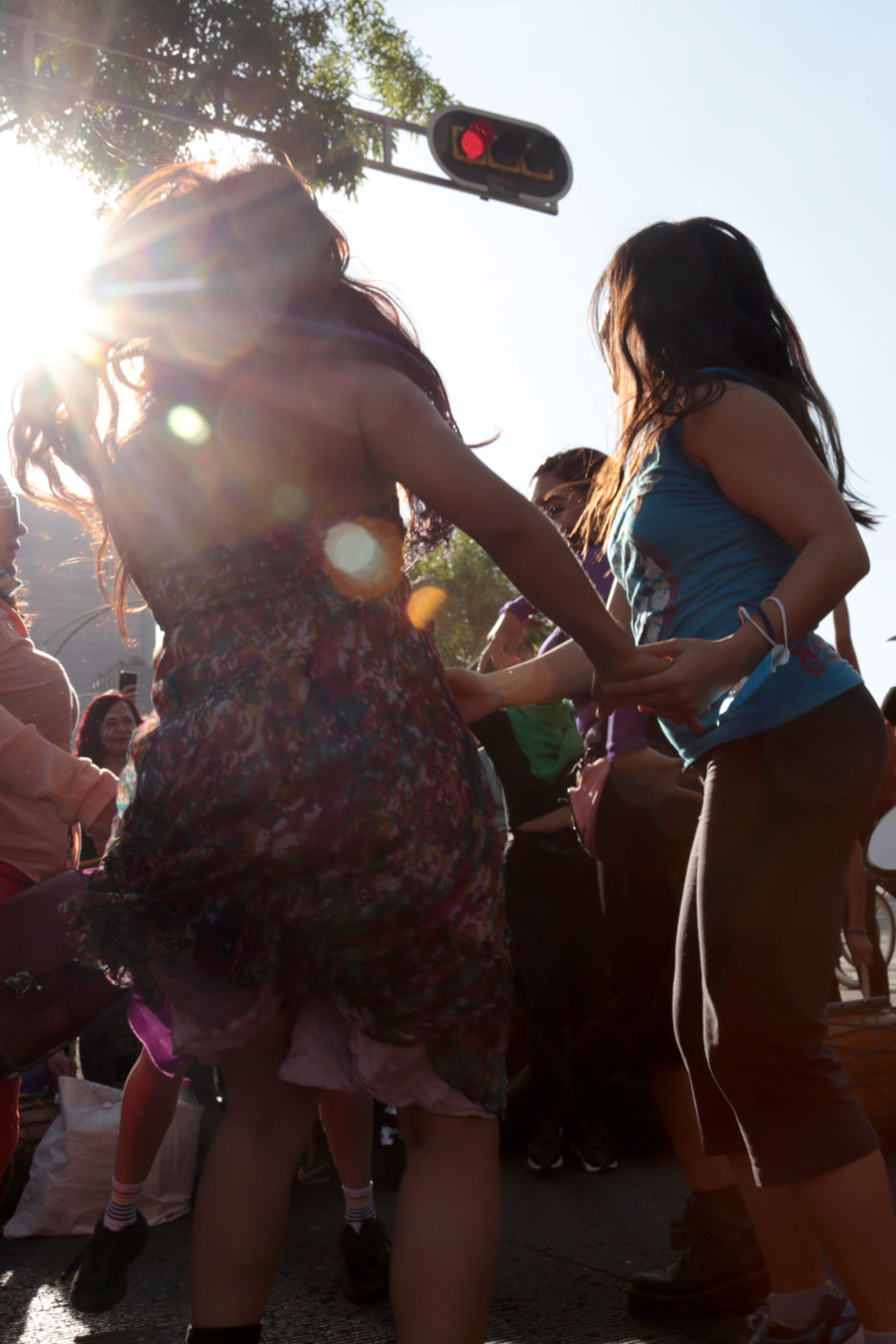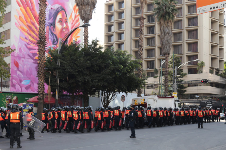 Y sin confrontación: “Gracias por cuidarnos, ustedes son nosotras»(a la policía) / «Policía consciente, se une al contingente» y así, puño en alto hubo un momento que se unieron rodeadas de aplausos de las demás mujeres.