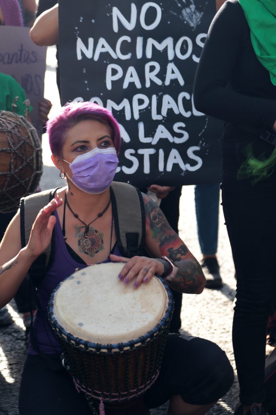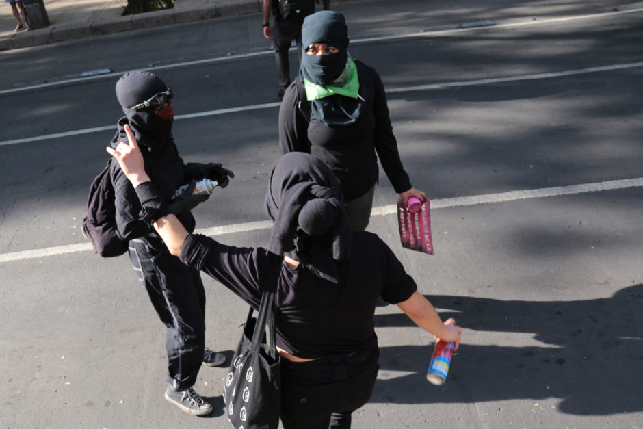 «Mujer, escucha…Esta es tu lucha” / «Somos malas, podemos ser peores y a quien no le guste, se jode, se jode» / «Verga viloladora a la licuadora» / «Tranquila hermana… Aquí está tu manada» / «Señor, señora … No sea indiferente … Se mata a las mujeres … En la cara de la gente» / «Mujer, hermana … Si te pega no te ama» / «¡No fue un crimen pasional, fue un macho patriarcal!» / «El que no brinque es macho… el que no brinque es macho»… y así